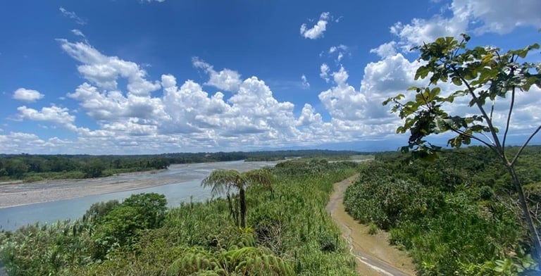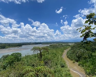 Descubre el Mirador de Puyupungo en Madre Tierra: vistas únicas del río Pastaza, naturaleza amazónica y un entorno perfecto para relajarse y admirar el paisaje.